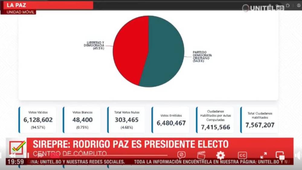 REGIONALES Con el 98% del conteo preliminar, Rodrigo Paz logra el 54% y se convierte en presidente electo 20 Oct 2025 por E-DIGITAL