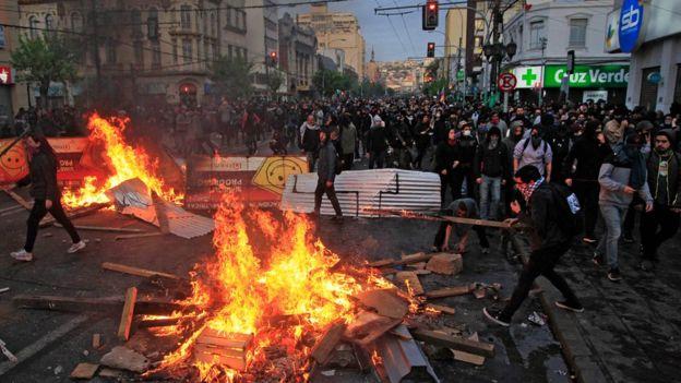 Las protestas de Santiago se han extendido a otras ciudades chilenas como Valparaíso (en la imagen).